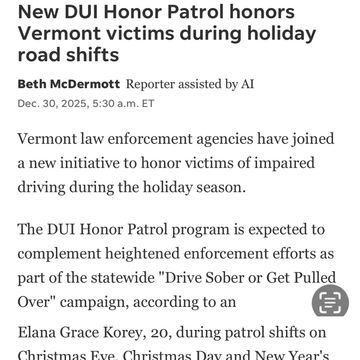 New DUI Honor Patrol honors Vermont victims during Holiday road shifts with law enforcement